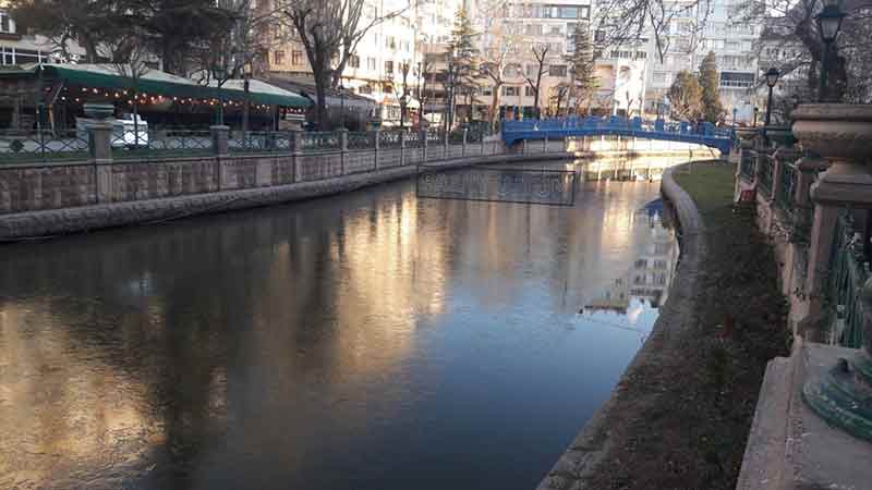 Eskişehir’de hava sıcaklıklarının eksi derecelerin altına düşmesiyle birlikte Porsuk çayı üzerinde buz tabakası oluştu.