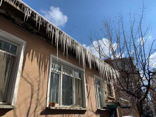 Eskişehir’de yoğun kar yağışı ve hava sıcaklığının eksi derecelere düşmesinin ardından bugün yüzünü gösteren güneş, çatılarda ve tentelerde tehlikeli buz sarkıtlarının oluşmasına sebep oldu.