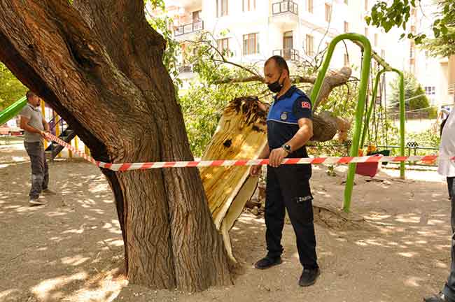 Eskişehir’de çocuk parkında bulunan yaşlı bir ağaç ortadan ikiye ayrılarak devrilince parktaki oyun alanları ve bir minibüs zarar gördü. Olay esnasında parkın boş olması ise herhangi bir can kaybı ya da yaralanmanın önüne geçti.