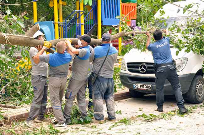 Eskişehir’de çocuk parkında bulunan yaşlı bir ağaç ortadan ikiye ayrılarak devrilince parktaki oyun alanları ve bir minibüs zarar gördü. Olay esnasında parkın boş olması ise herhangi bir can kaybı ya da yaralanmanın önüne geçti.