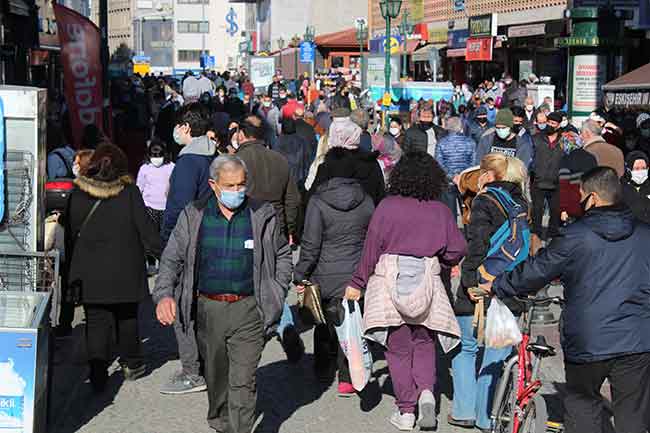Eskişehir'de, Korona virüse (Covid-19) karşı alınan tedbirler kapsamında hafta sonu sokağa çıkma kısıtlamasının başlamasına saatler kala ortaya çıkan insan kalabalığı adeta pes dedirtti.