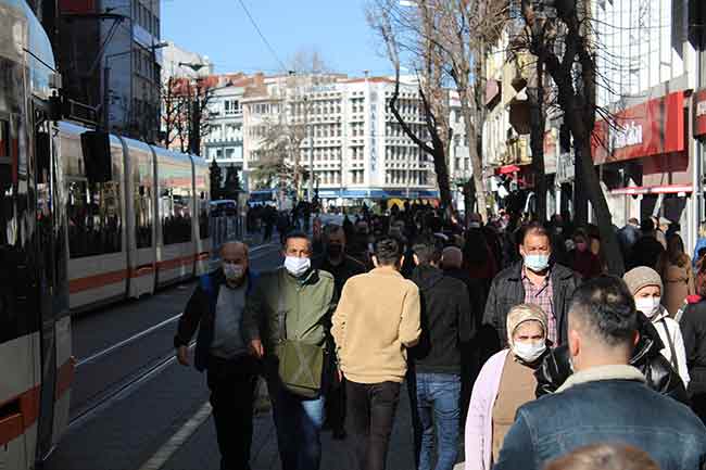Eskişehir'de, Korona virüse (Covid-19) karşı alınan tedbirler kapsamında hafta sonu sokağa çıkma kısıtlamasının başlamasına saatler kala ortaya çıkan insan kalabalığı adeta pes dedirtti.
