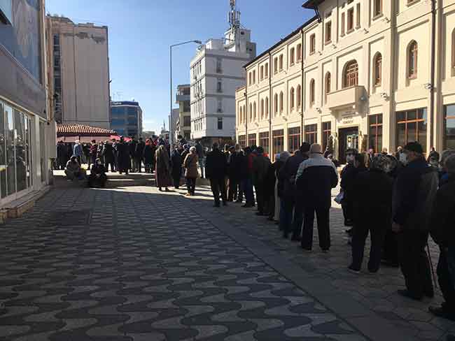 Eskişehir Büyükşehir Belediyesi İletişim ve Eskart Başvuru Merkezi (BİLEM) önünde HES kodu eşleştirme işlemi başvurusu için özellikle yaşlıların oluşturduğu uzun kuyruk sosyal mesafe açısından endişelendirdi.