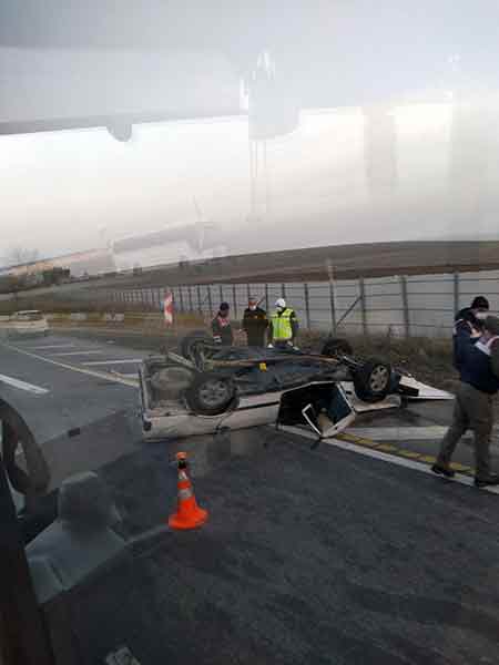 Sürücünün virajı alamayarak aracıyla kaldırıma çarpması sonucu takla atan araç, yol kenarında ters halde durabildi. Kazada, araçta yolcu olarak bulunan Hayrettin Kabasakal (29) ve Betül Parlar (29) olay yerinde hayatını kaybetti.