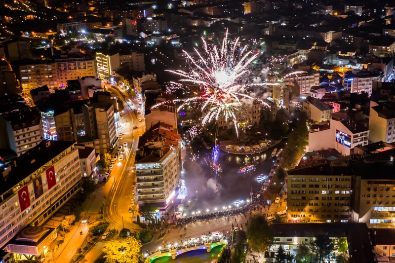 Cumhuriyet’in kuruluşunun 95. yıl dönümü kutlamaları akşam Porsuk Çayı’nda düzenlenen botlarla fener alayı, havai fişek ve Flyboard gösterisi ile tamamlandı. Köprü üstleri ve Porsuk Çayı kıyılarını dolduran binlerce Eskişehirli marşlara büyük bir coşkuyla eşlik etti.