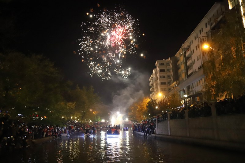 Cumhuriyet’in kuruluşunun 95. yıl dönümü kutlamaları akşam Porsuk Çayı’nda düzenlenen botlarla fener alayı, havai fişek ve Flyboard gösterisi ile tamamlandı. Köprü üstleri ve Porsuk Çayı kıyılarını dolduran binlerce Eskişehirli marşlara büyük bir coşkuyla eşlik etti.