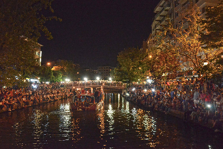 Eskişehir’in düşman işgalinden kurtuluşunun 96. yıl dönümü kutlamaları akşam Porsuk Çayı’nda düzenlenen botlarla fener alayı, havai fişek ve Flyboard gösterisi ile tamamlandı.