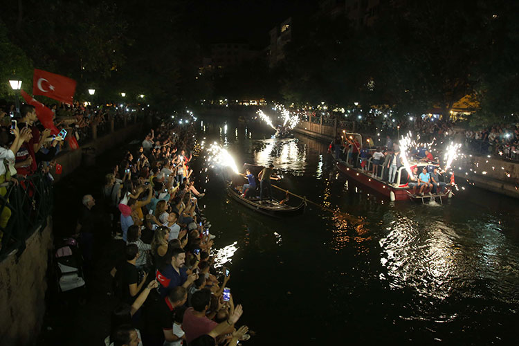 Eskişehir’in düşman işgalinden kurtuluşunun 96. yıl dönümü kutlamaları akşam Porsuk Çayı’nda düzenlenen botlarla fener alayı, havai fişek ve Flyboard gösterisi ile tamamlandı.