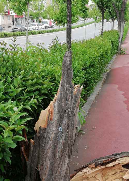 Eskişehir’de aniden bastıran şiddetli yağmur ve rüzgar, ağaçların dallarının kırılmasına sebep oldu.