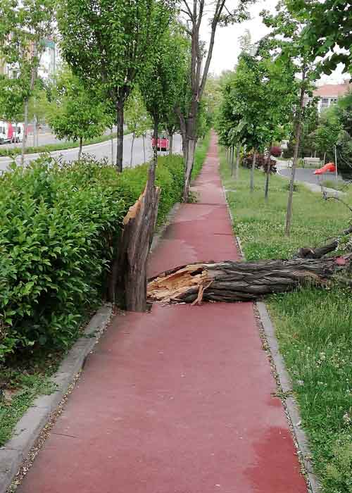Eskişehir’de aniden bastıran şiddetli yağmur ve rüzgar, ağaçların dallarının kırılmasına sebep oldu.