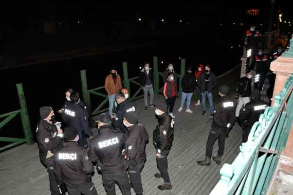 Eskişehir’de, Porsuk Çayı kenarında bulunan ahşap iskelede ateş yakan gençler, polis müdahalesi ile dağıldı.