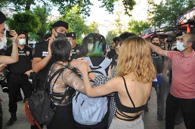 Eskişehir'de Adalar Porsuk Mevkii'nde yapılmak istenen Eskişehir 1. Onur Yürüyüşü'ne polis izin vermedi. Biri avukat 20 kişi gözaltına alındı. Haber ve fotoğraflar: MELTEM KARAKAŞ KAYA