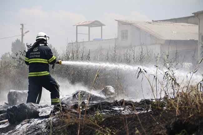 Eskişehir’de atıl vaziyetteki lastiklerin bulunduğu arazideki çalıların belirlenemeyen bir sebeple tutuşması sonucu yangın çıktı. Çıkan yangında çok sayıda lastik küle döndü.