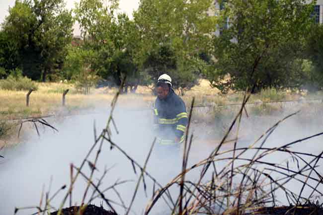 Eskişehir’de atıl vaziyetteki lastiklerin bulunduğu arazideki çalıların belirlenemeyen bir sebeple tutuşması sonucu yangın çıktı. Çıkan yangında çok sayıda lastik küle döndü.