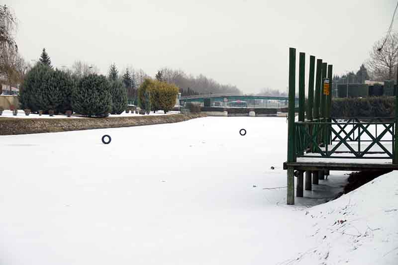 Eskişehir’de soğuk havanın etkisiyle buz tutan Porsuk Çayı’nın yüzeyine atılan araç lastikleri dikkat çekti.