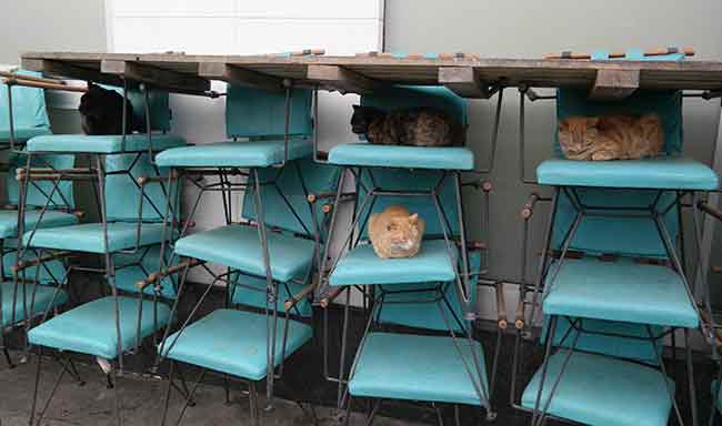 Çoğu zaman yardım sever insanlardan mama hediyesi bile geldiğini aktaran işletmeci, “Ürünlerin olduğu yere girmelerine izin vermiyoruz, ancak masa ve sandalyelerin olduğu yerde özgürce gezebiliyorlar. Hiçbir zararları yok” diye konuştu.