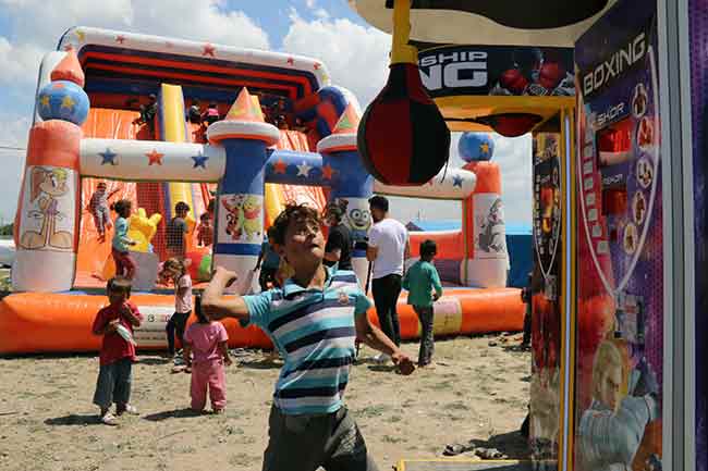 Yüzlerce kilometre uzaktaki memleketlerinden Eskişehir’e çalışmak için gelen mevsimlik tarım işçilerinin çocukları, günübirlik kurulan oyun parkında saatlerce eğlendi.