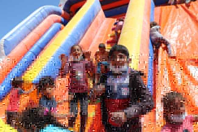 Yüzlerce kilometre uzaktaki memleketlerinden Eskişehir’e çalışmak için gelen mevsimlik tarım işçilerinin çocukları, günübirlik kurulan oyun parkında saatlerce eğlendi.