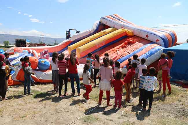 Yüzlerce kilometre uzaktaki memleketlerinden Eskişehir’e çalışmak için gelen mevsimlik tarım işçilerinin çocukları, günübirlik kurulan oyun parkında saatlerce eğlendi.