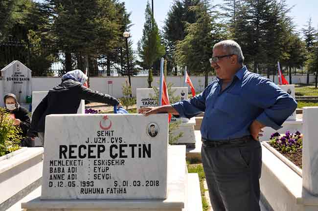2018 yılında Afrin’de Zeytin Dalı Harekâtı şehit düşen P. Uzm. Çvş. Serdar Ege’nin annesi Gülten Ege, duygu dolu anlar yaşadığı şehitlik ziyaretinde