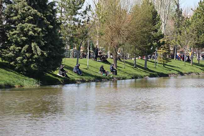 Eskişehir'de güneşli hava koronavirüsü unutturdu
