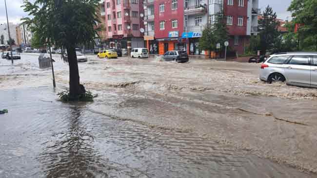 Eskişehir’de yaklaşık 10 dakika süren sağanak yağış sonrasında yollar suyla kaplanırken, bazı tramvay seferleri yapılamadı, hayat geçici olarak adeta durma noktasına geldi.