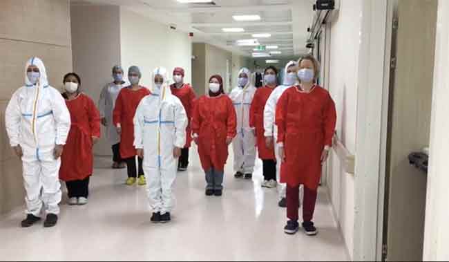 Eskişehir Osmangazi Üniversitesi Tıp Fakültesi Yoğun Bakım Ünitesindeki sağlık çalışanları, saatler 09.05’i gösterdiğinde İstiklal Marşı'nı okuyarak Atatürk’ü ölümünün 82’nci yıldönümünde andı.