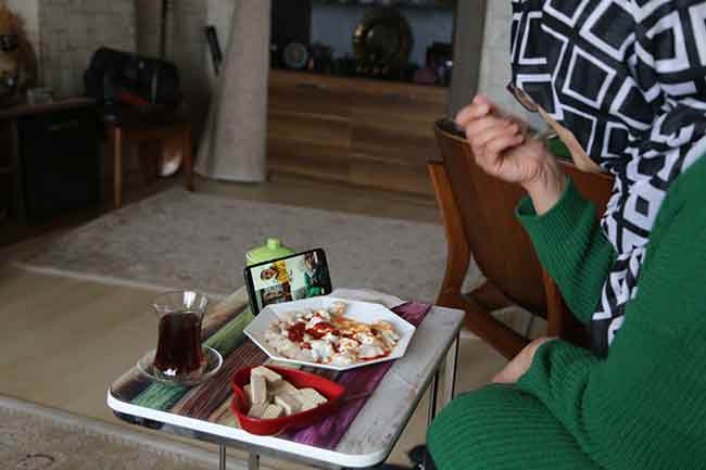 Eskişehir'de bir apartmanda yaşayan kadınlar, yeni tip coronavirüsten (Covid-19) korunmak için evlerinde kalarak, her hafta cep telefonlarından görüntülü sohbetle "gün" yapmaya devam ediyor.
