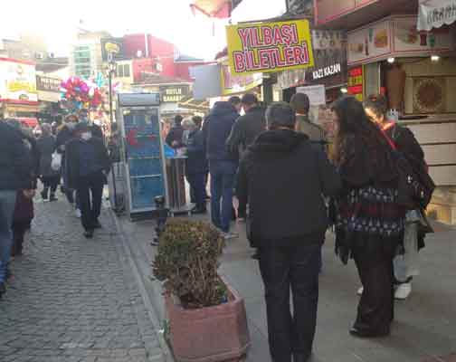 Eskişehir’de yaşayan bazı vatandaşlar, dünyayı kasıp kavuran Korona virüsü göz ardı edip sosyal mesafe kuralına uymayarak yılbaşı biletleri için kuyrukta beklediler.
