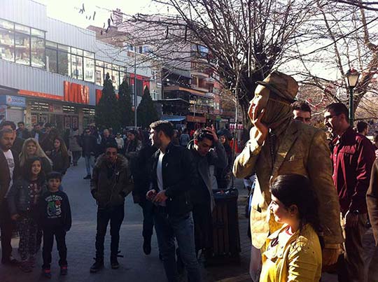 Eskişehir'de güzel havanın tadını çıkaran vatandaşlar, canlı heykel performansı ile doyasıya eğlendi.