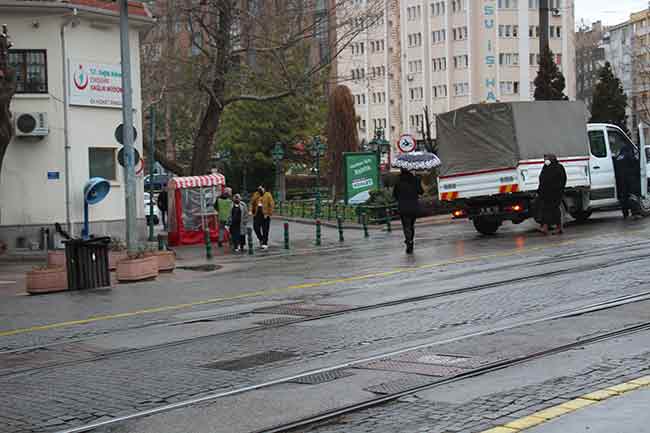 Eskişehir’de dün hava sıcaklığı mevsim normallerinin üzerinde seyrederken bugün yağan karla karışık yağmurla birlikte hava sıcaklığı hissedilir biçimde düştü