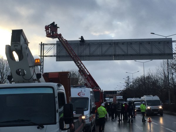 Eskişehir’de bir şahıs, çevreyolunda yön levhasına çıkarak intihar girişiminde bulundu. Tepebaşı Kaymakam Erdinç Yılmaz olay yerine gelip ‘yardım sözü’ vererek şahsı aşağı indirdi.