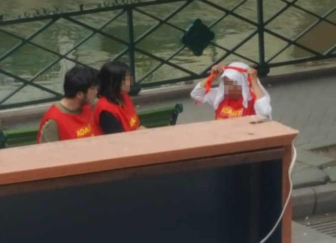 Bu esnada bölgede güvenlik önlemi alan polis ekipleri, olayı gerçekleştiren Yıldız T. Deniz A. ve Taylan S.'yi gözaltına aldı. Polis ekiplerinin gözaltı uygulaması sırasında da çeşitli sloganlar atan grup, polis otobüsüne bindirildi.