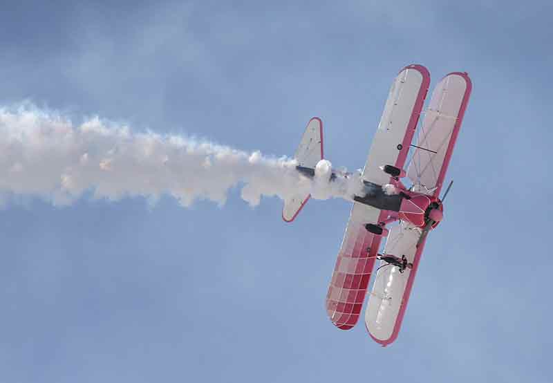 Eşinin kullandığı uçağın kanatlarında yürüyerek gösteri sunan İsviçreli Danielle Del Buono, 15 yıldan bu yana uçuş sırasında Boeing Stearman tipi uçağın kanadında yaptığı gösteriyi, Eskişehir'de de tekrarladı.