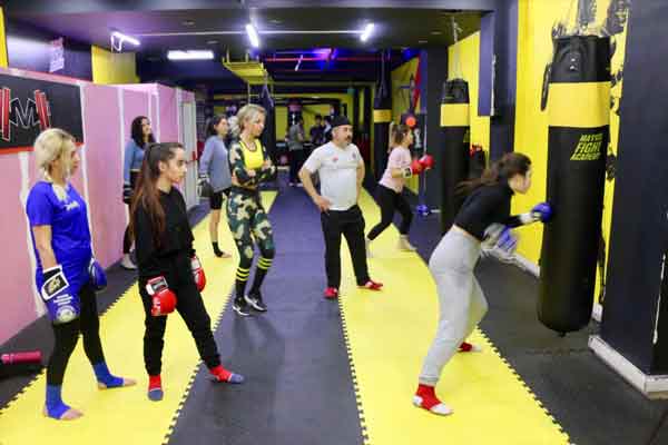 Eskişehir'de bir spor salonunda, şiddet mağduru olmaktan korkan kadınlara, antrenörler eşliğinde savunma sanatı eğitimi veriliyor.