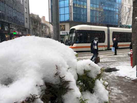Özellikle geçen hafta adeta yaz mevsimini yaşayan Eskişehirli vatandaşlar botlarını, kabanlarını ve şapkalarını tekrar giydi. Araç sürücüleri karla birlikte kayganlaşan yolda ilerlemekte oldukça güçlük çektikleri gözlendi.