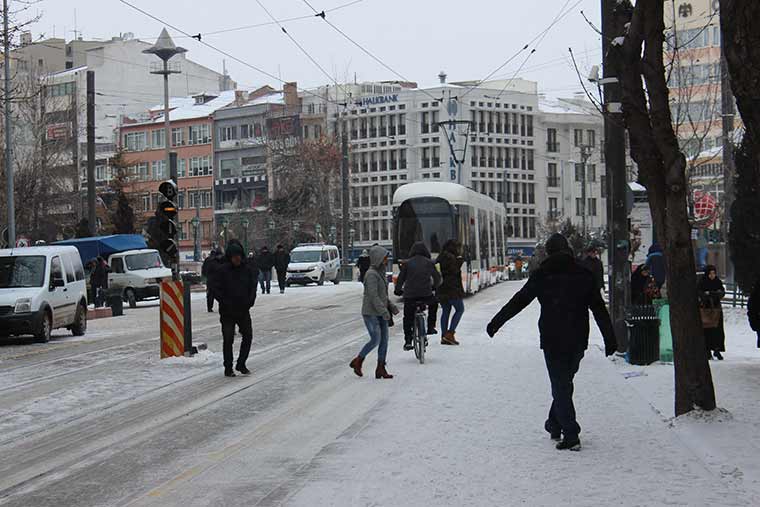 Eskişehir’de etkili olan soğuk hava yerini sabah saatlerinde kar yağışına bırakırken hayatı da olumsuz etkiledi.