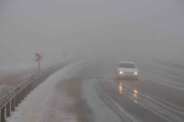 Araç sürücüleri, kar yağışının zemini kayganlaştırmasıyla birlikte sisin de çökmesiyle zor anlar yaşadı.