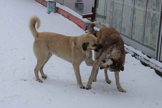 Eskişehir’de yeniden başlayan kar yağışıyla birlikte sokaklar ve caddeler karla kaplanırken keyfini çıkarmak sokak hayvanlarına kaldı.