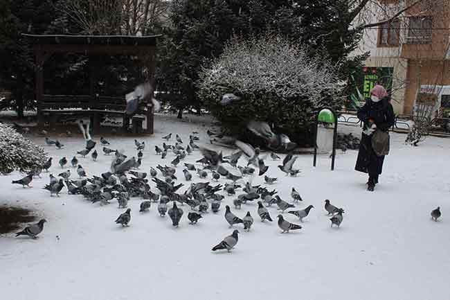 Eskişehir’de yeniden başlayan kar yağışıyla birlikte sokaklar ve caddeler karla kaplanırken keyfini çıkarmak sokak hayvanlarına kaldı.