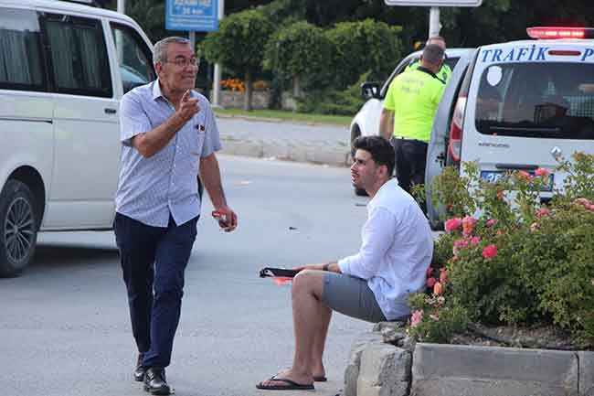 Eskişehir'de, iki aracın karıştığı ve maddi hasarla atlatılan trafik kazasının ardından sürücülerden birinin babası oğlunu alkışlayarak yanına geldi.