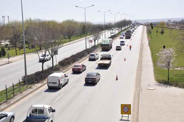 Eskişehir çevre yolundaki yol çalışması uzun araç kuyruklarına sebep oldu.