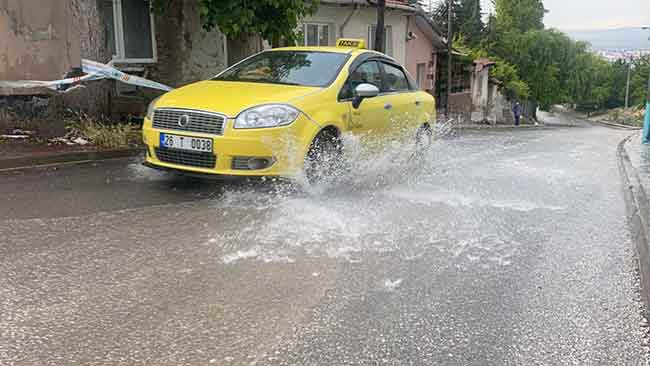 Özellikle şehrin yüksek kesimlerinde daha şiddetli olan yağış dakikalar içerisinde cadde ve sokaklarda su birikintilerine neden oldu.