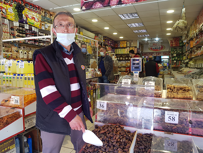 Dolaysıyla hem Ramazan ayı hem de kısıtlama nedeniyle hurmalar, kuru meyveler, fıstık, fındık ne varsa yok satılıyor.