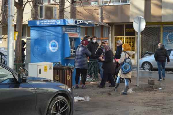 Koronavirüs (Covid-19) nedeniyle ülke genelinde uygulanan sokağa çıkma kısıtlaması sürerken, Eskişehir’de bulunan bir sumatikte, şebeke su kartlarına dolum yapılması için gelen vatandaşlarla uzun kuyruk oluştu.