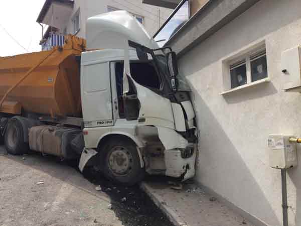 Deprem etkisi oluşturan kazada, şans eseri sokakta kimse bulunmazken, hafriyat kamyonunun çarptığı garajın hemen üst katında ikamet eden ailenin de piknikte olması olası faciayı önledi.