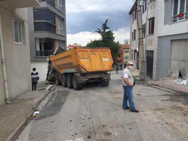 Eskişehir’de, freni boşalan hafriyat kamyonu 3 otomobile çarptıktan sonra bir binanın içine girdi. Kazada, tırın çarptığı evde yaşayanların piknikte olması faciayı önledi.