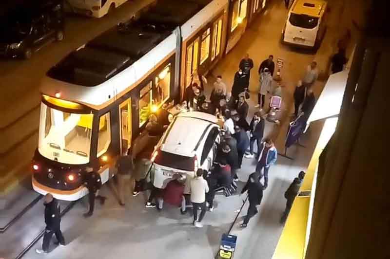Tramvay kendi yolunda gidiyordu. Ben de kendi yolumdaydım. Yolun sağ tarafında da park etmiş araçlar vardı. Araç parkının yasak olduğu bir yerdi. Park halindeki araçlardan birisi diğerlerine göre biraz daha yola doğru dışarıda duruyordu. Zaten tek şeritli bir caddeydi ve o esnada tramvay da geçiyordu. Tramvayla yol kenarına park eden aracın arasında kalarak sıkıştım. Hastanede tedavim tamamlandıktan sonra taburcu edildi. Şuan evimdeyim. Sağlık durumum da gayet iyi. Sosyal medyada kaza yerinde çekilen videoları gördüm. Çevredeki insanlar aracı kaldırarak kenara almış, öylelikle sıkıştığım yerden çıkarılmışım. Duyarsız kalmayıp yardımıma koşan herkese çok teşekkür ederim