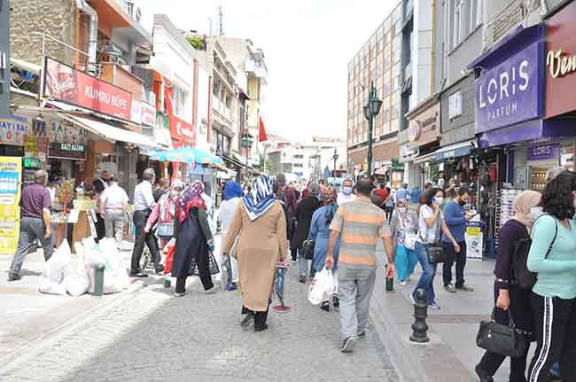 Eskişehirliler bayram alışverişi yapmak için adeta sokağa dökülüp sosyal mesafe kurallarını hiçe saydı.