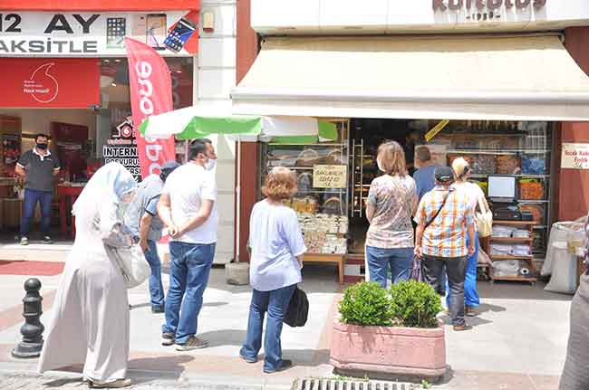 Eskişehirliler bayram alışverişi yapmak için adeta sokağa dökülüp sosyal mesafe kurallarını hiçe saydı.
